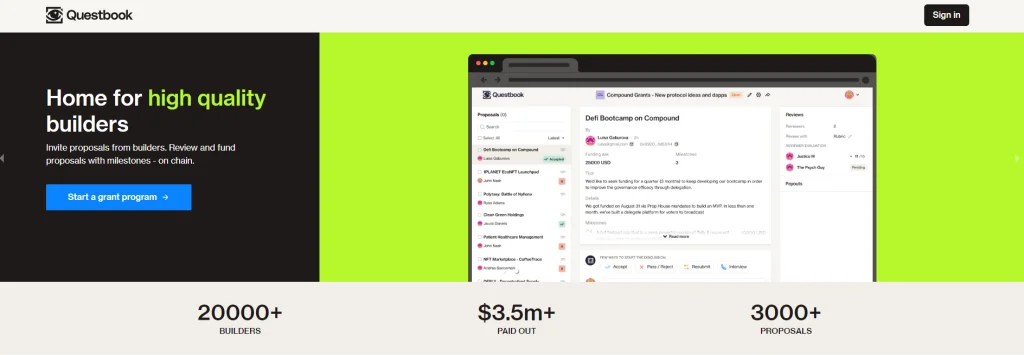 Questbook serves as a learning and development platform for aspiring blockchain developers. It provides structured pathways and quests focused on blockchain technology, smart contract development, and dApp creation. Questbook’s hands-on approach ensures that users not only gain theoretical knowledge but also practical experience, preparing them for real-world challenges in the web3 space.