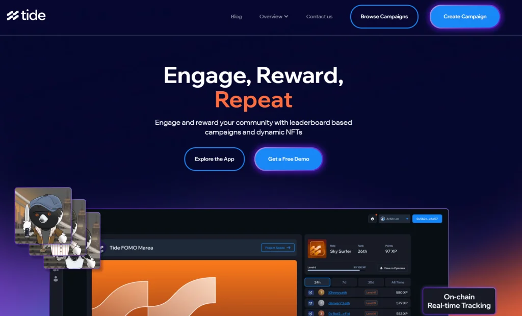 Tide specializes in the intersection of quests and analytics, providing projects with detailed insights into campaign performance. Its platform is designed to streamline the growth process for web3 projects through data-driven decisions. By offering granular metrics on daily active users (DAU) and other key performance indicators, Tide helps projects optimize their engagement strategies effectively.